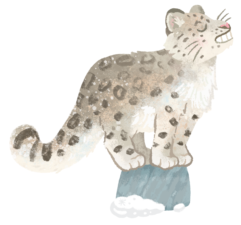 Spot Illustration of a Snow Leopard drawn for Chickadee Magazine, found in the January/ February 2026 Issue .