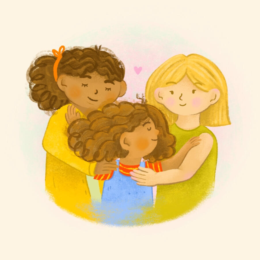 A father an son are skating at Nathan Phillips Square in Toronto. This art was created with the intention of showing a father and son in a heartwarming moment, which is often not shown in media.